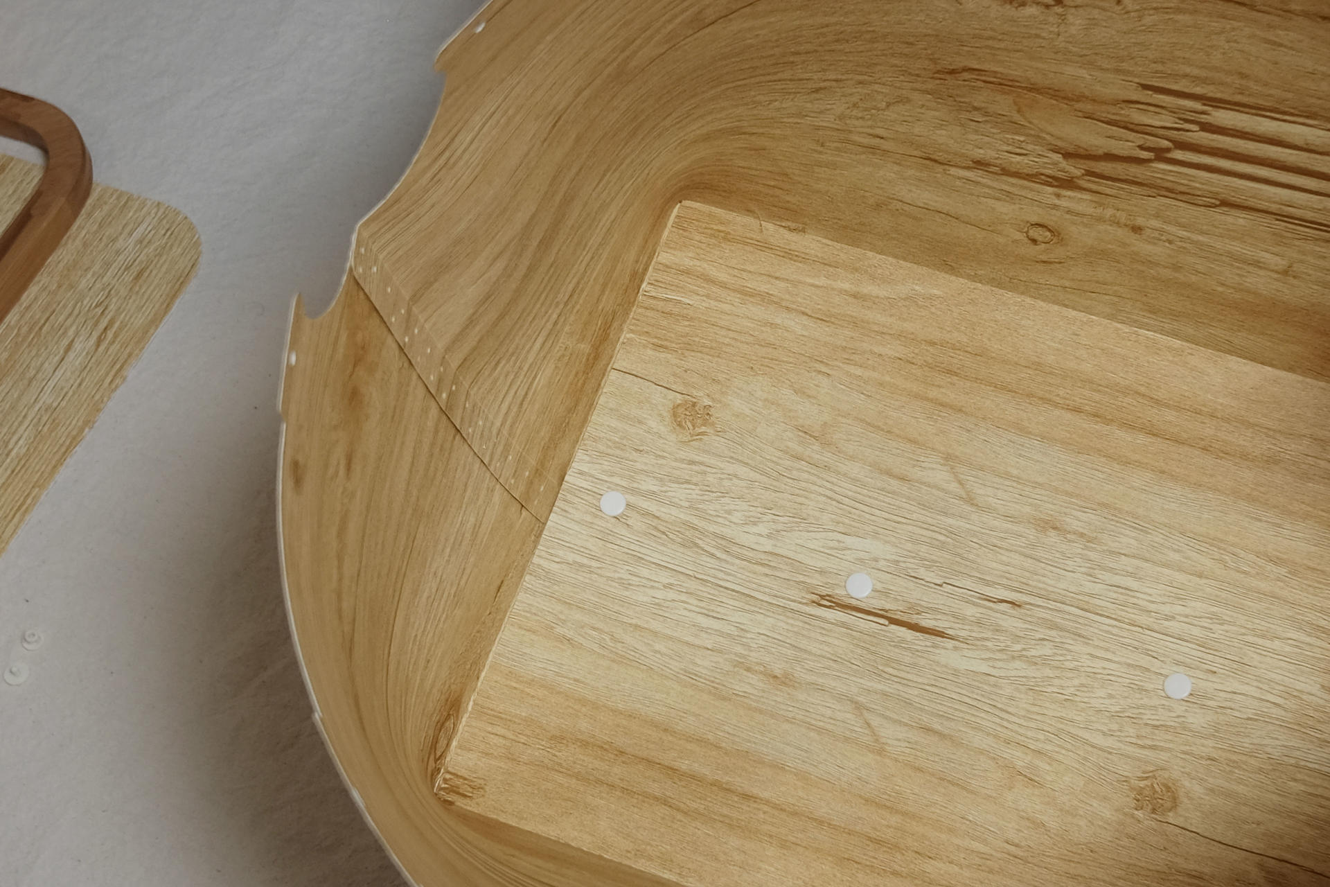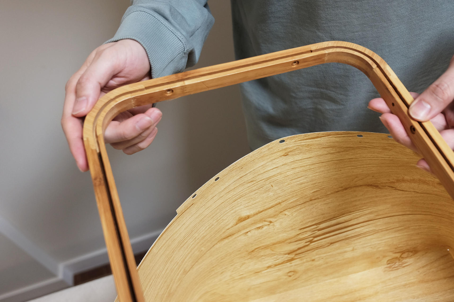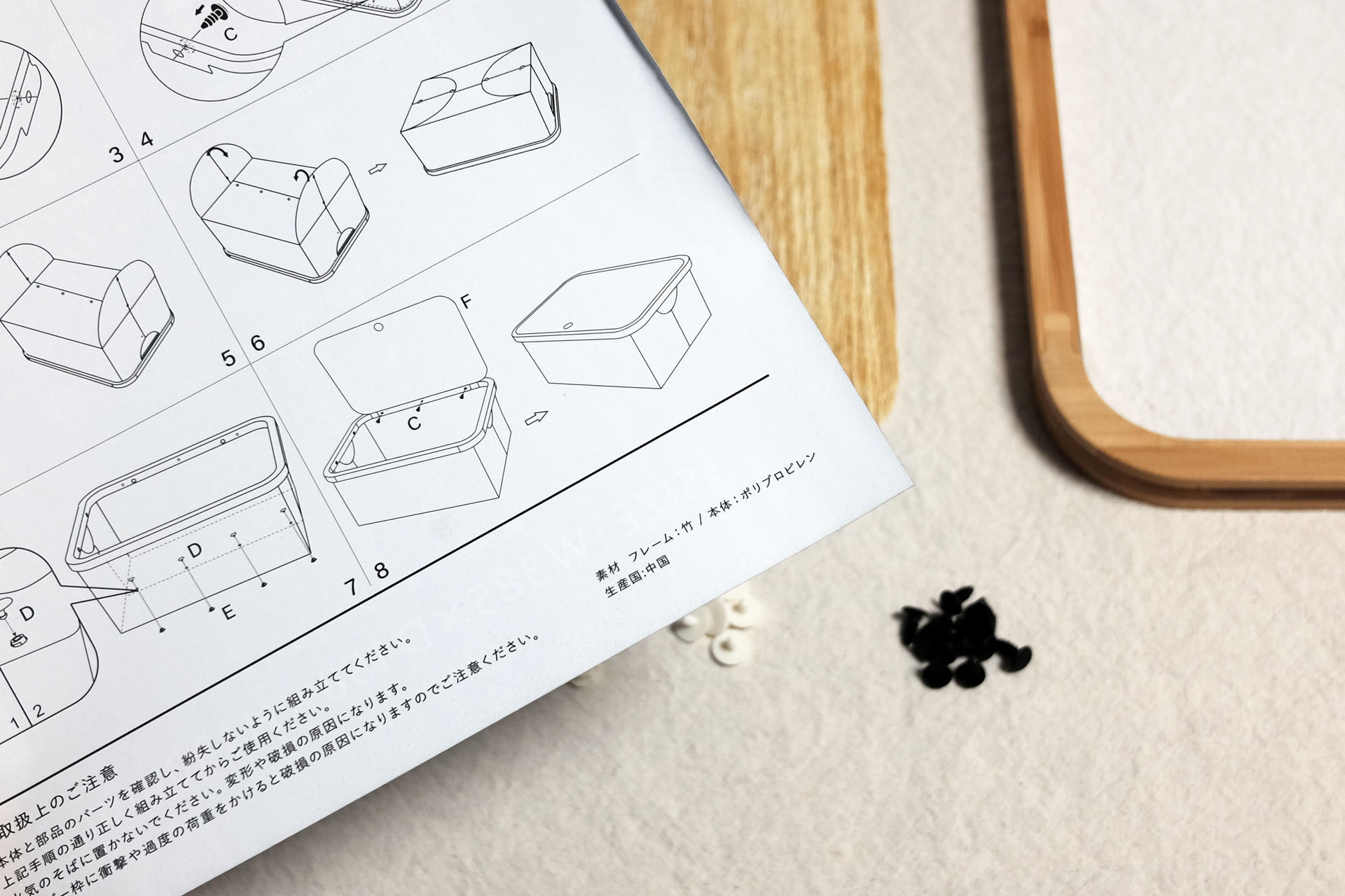 뚜껑도 검은 스냅을 사용해서. 대나무 프레임의 3개에 맞춰서 조립하시면 되요. 이 때 주의하실 점은! 뚜껑의 접는 선을 꾹꾹 잘 접어서 조립해주셔야, 조립했을 때 뚜껑이 잘 뜨지 않는답니다. 잘 안되는 부분이 있다면, 언제든 문의주세요!!