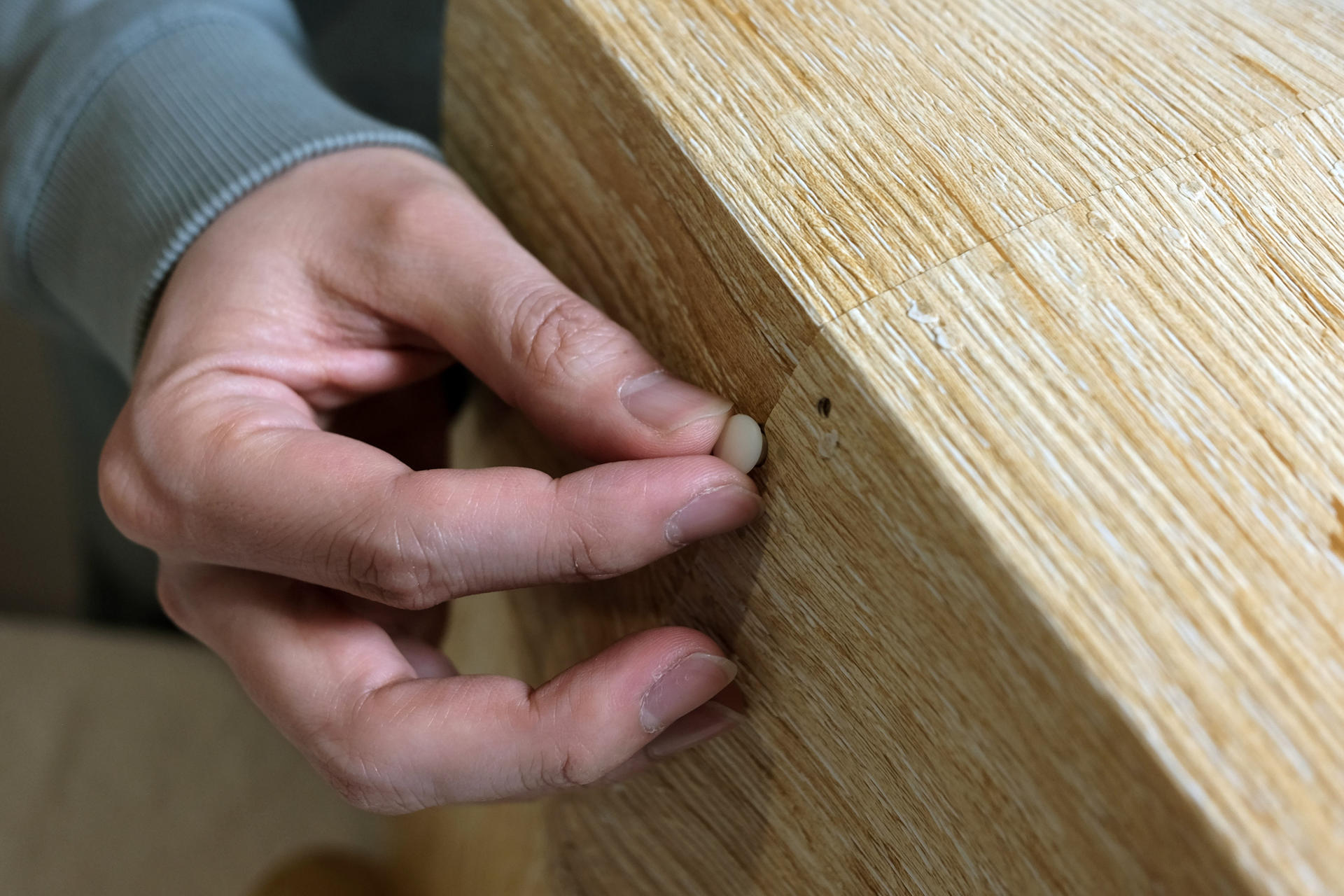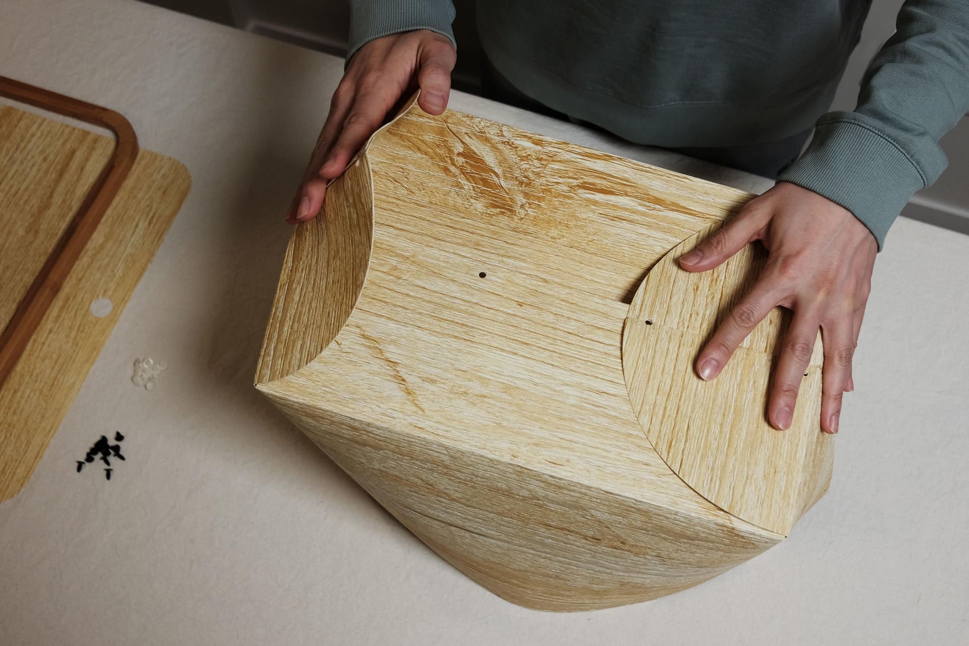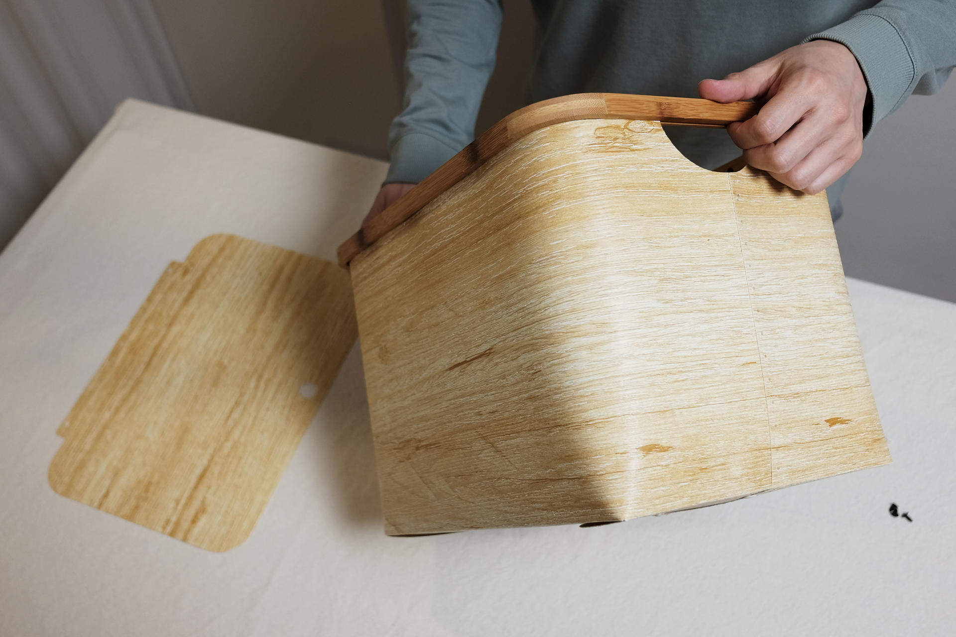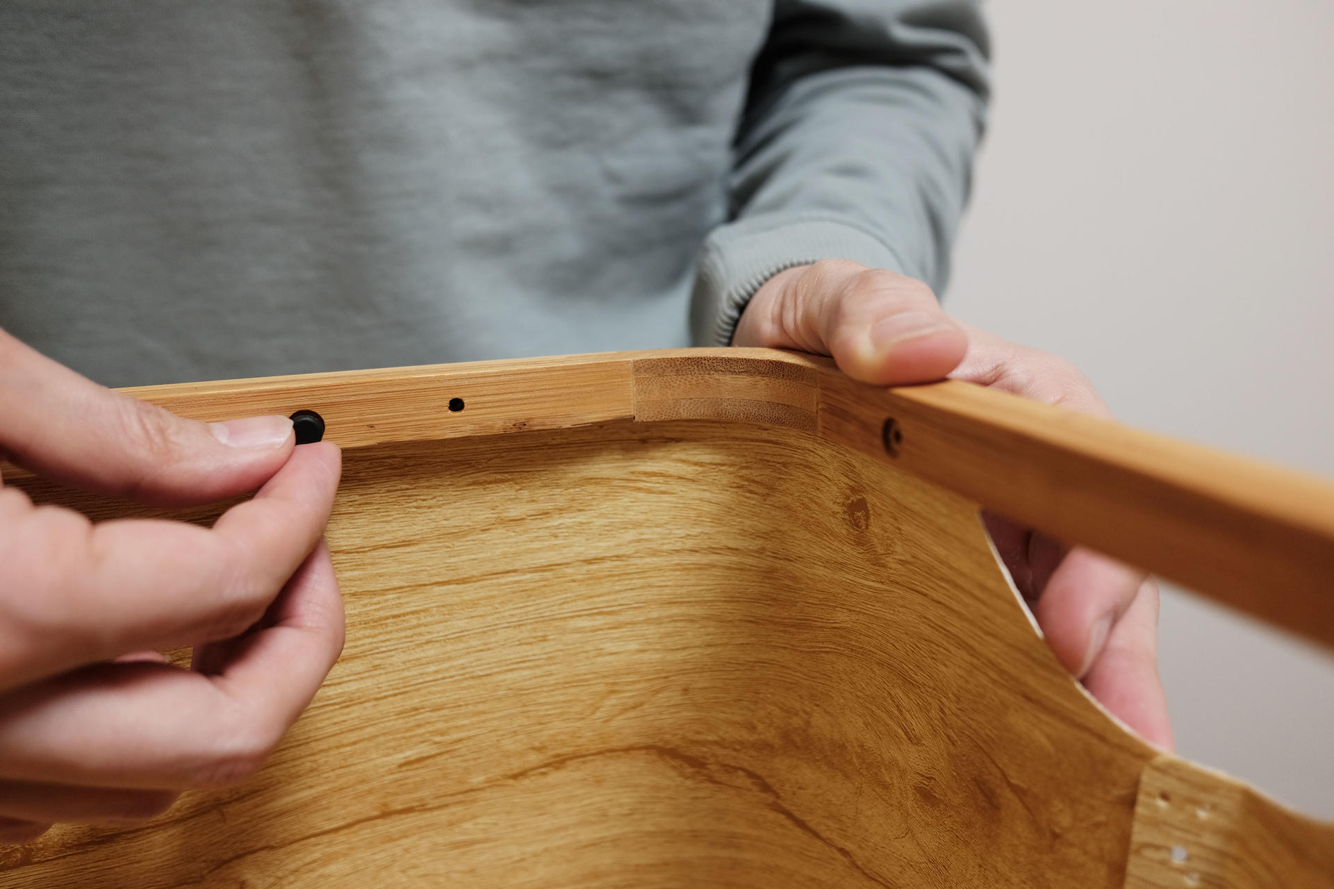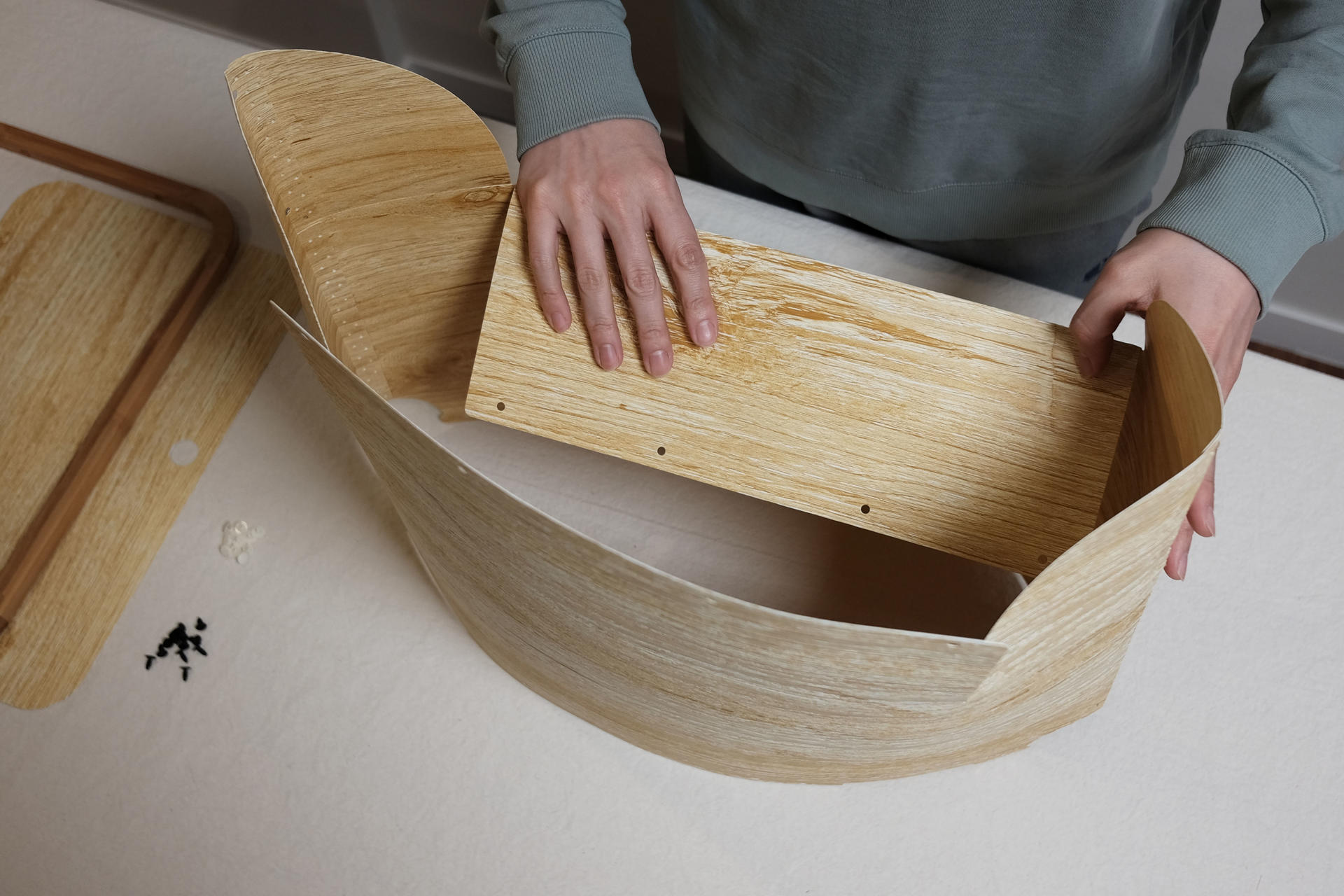 대나무 프레임의 홈 쪽으로 박스를 끼워주세요.