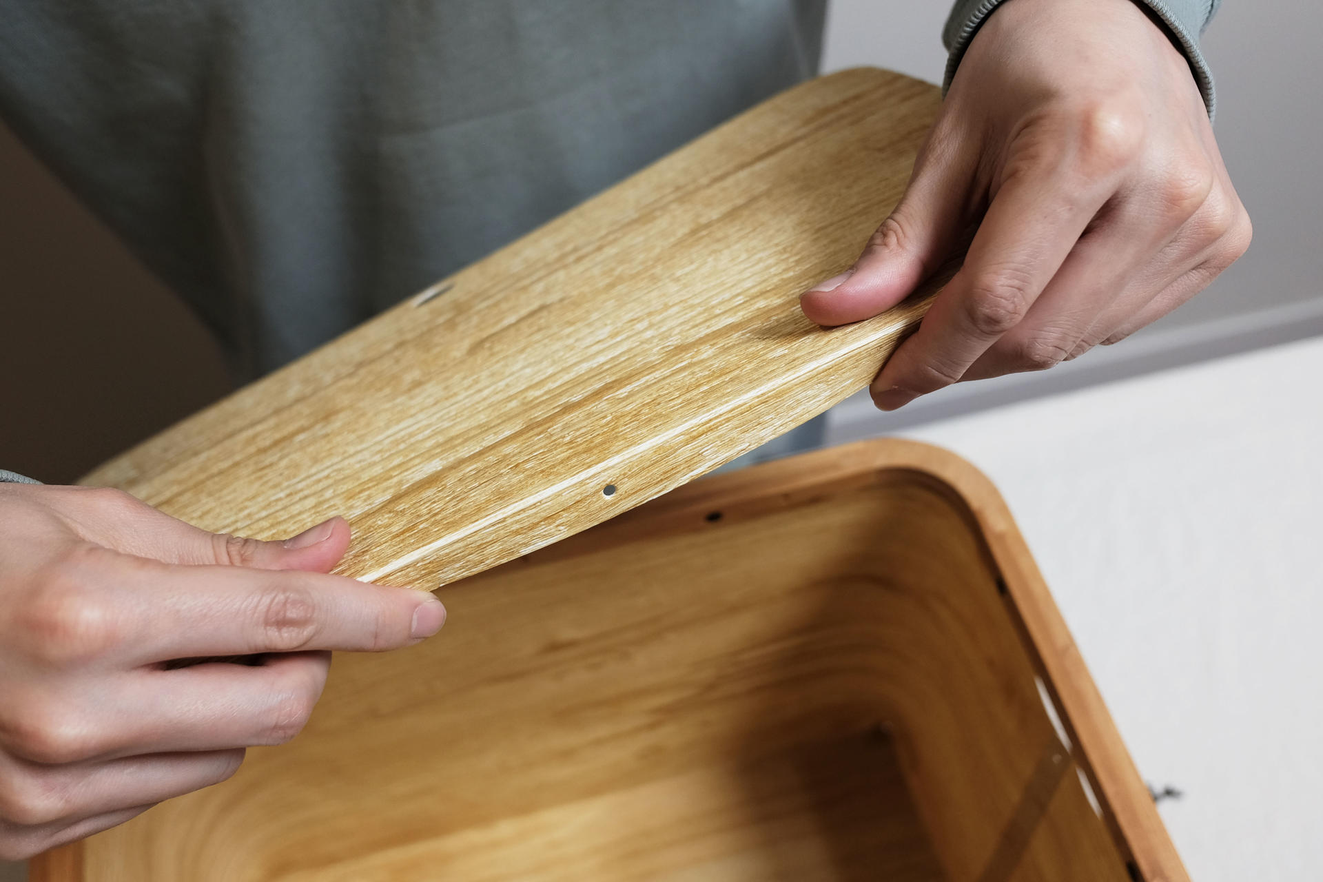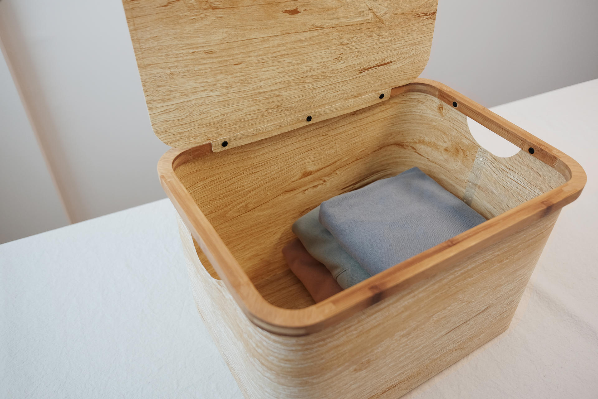 여행상점에서 소개 드리는 조립식 수납 박스는. 물과 먼지에 강한 폴리프로필렌 소재로 만들어져서 편하게 사용하실 수 있으며, 오염이 생긴 경우는 물로 가볍게 닦아주시면 됩니다. 요철 가공을 통해 나뭇결 텍스처를 더한 표면과 프레임의 대나무 소재로 따뜻하면서도 고급스러운 느낌을 더해 마무리했습니다.