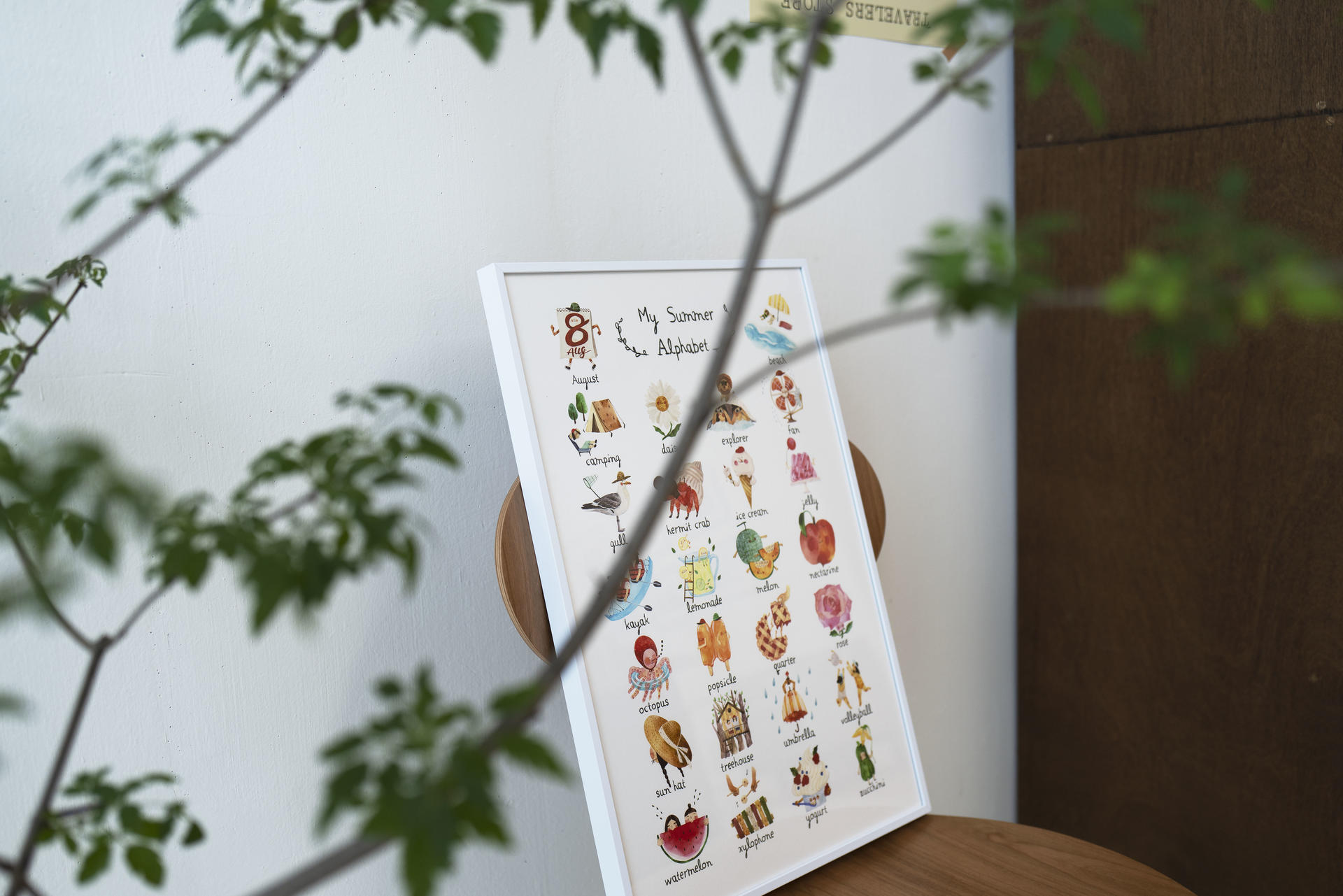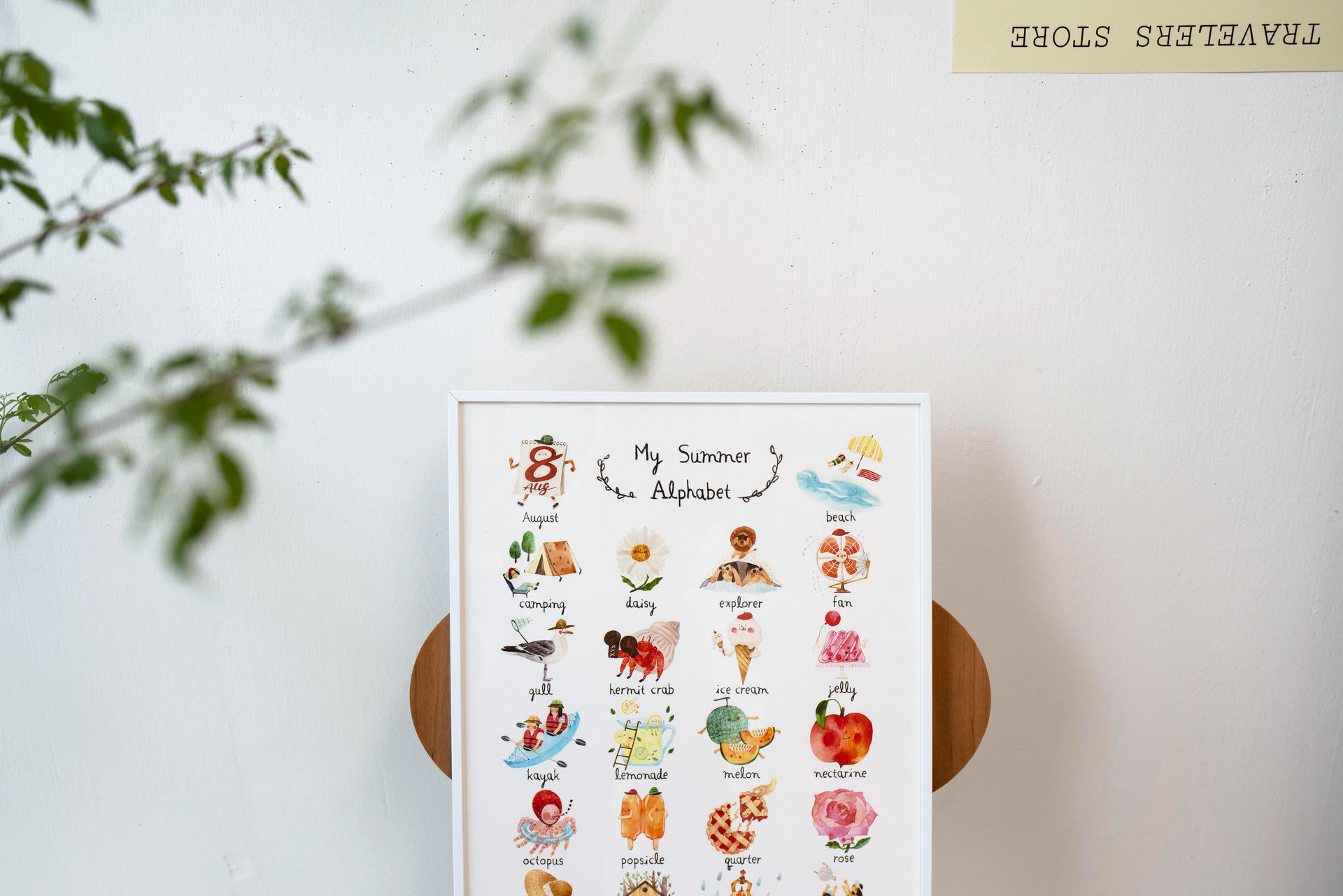 여행상점에서 소개 드릴 다야 앤 아리아의 상품은 아이들 방 인테리어 소품으로 추천 드리는 ABC 포스터 입니다. 하나하나 수채화 기법으로 정성스럽게 표현되었으며. 위트 있는 감성이 더해져 특별한 포스터를 만들어주고 있습니다.