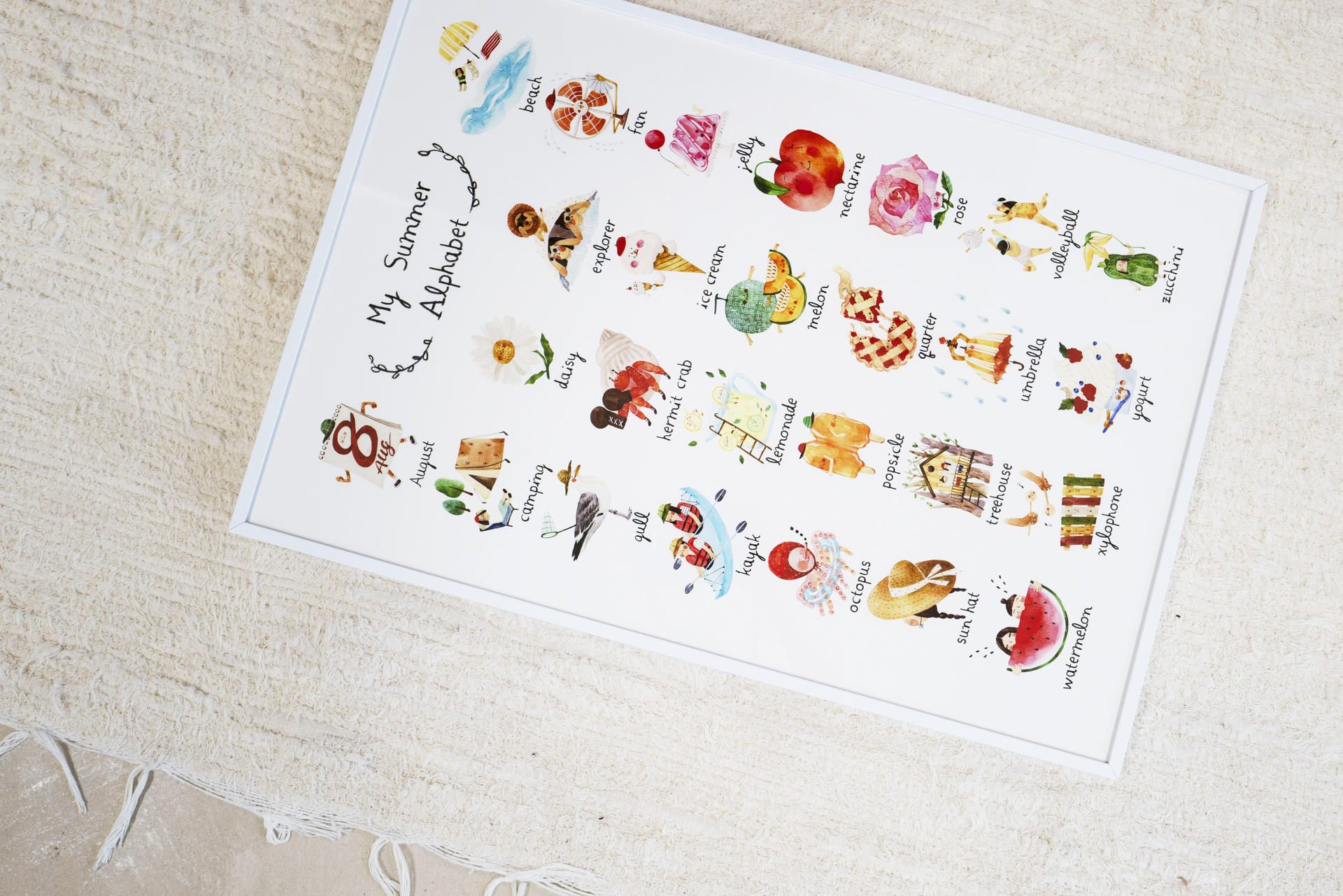 여름과 어울리는 기분 좋은 모티브들과 함께 알파벳을 만날 수 있어요. 아이스크림, 수박, 복숭아를 비롯해서 캠핑, 비치, 카약 등처럼 우리가 여름을 사랑하게 되는 모티브들이 가득합니다.