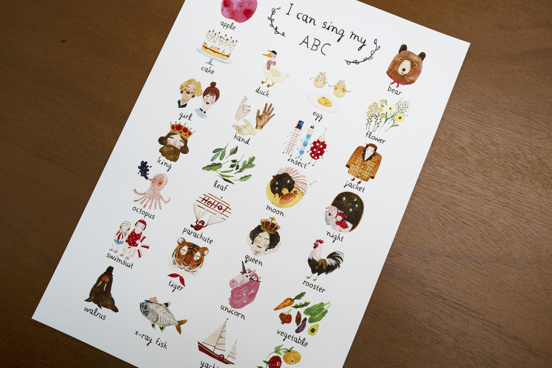 가장 기본이 되는 모티브들과 함께 알파벳을 만날 수 있는 포스터로. 사과와 곰, 오리 등 알파벳과 친근하게 연상되는 모티브들과 함께 다야, 아리아가 생각나는 귀여운 친구들로 채워져 있습니다.